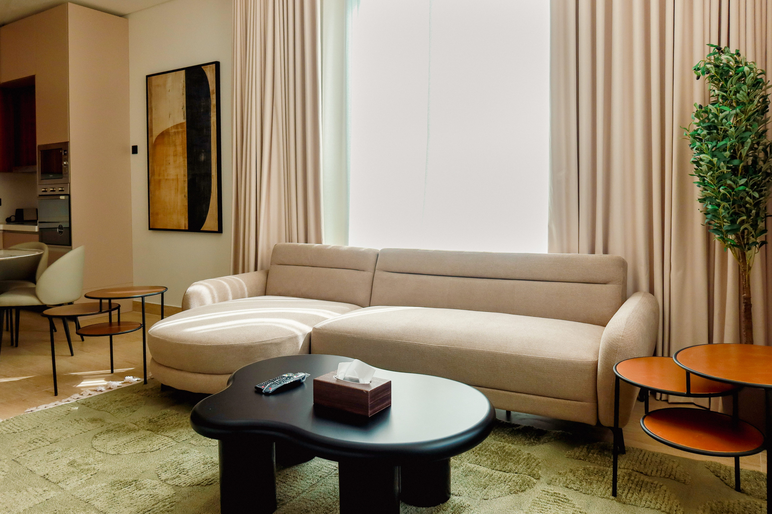 Comfortable two-bedroom apartment in the heart of Riyadh, ideal for families, small groups, or business travelers. 98 m² apartment combines modern design.