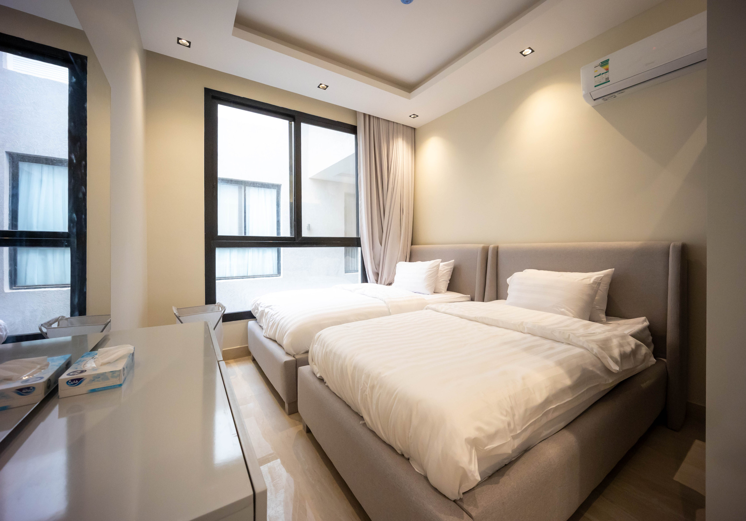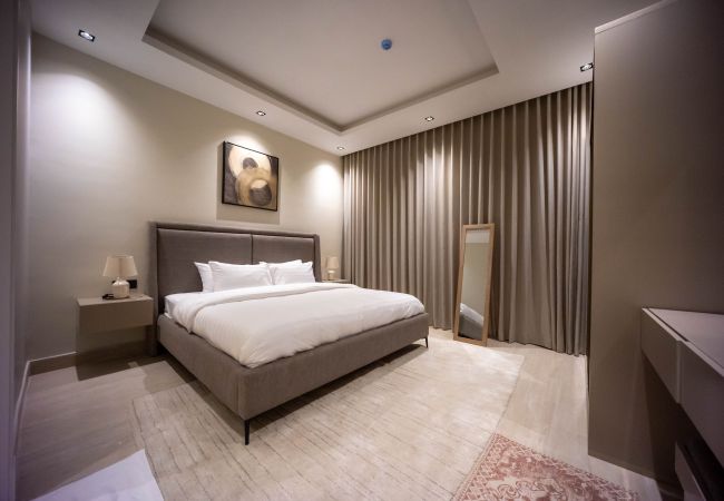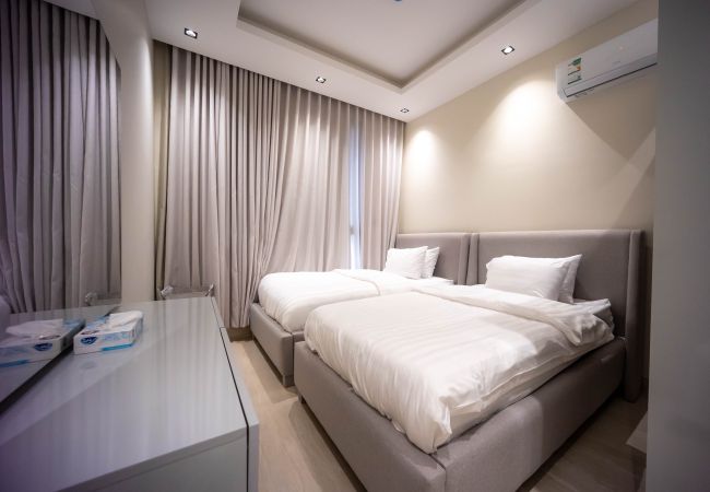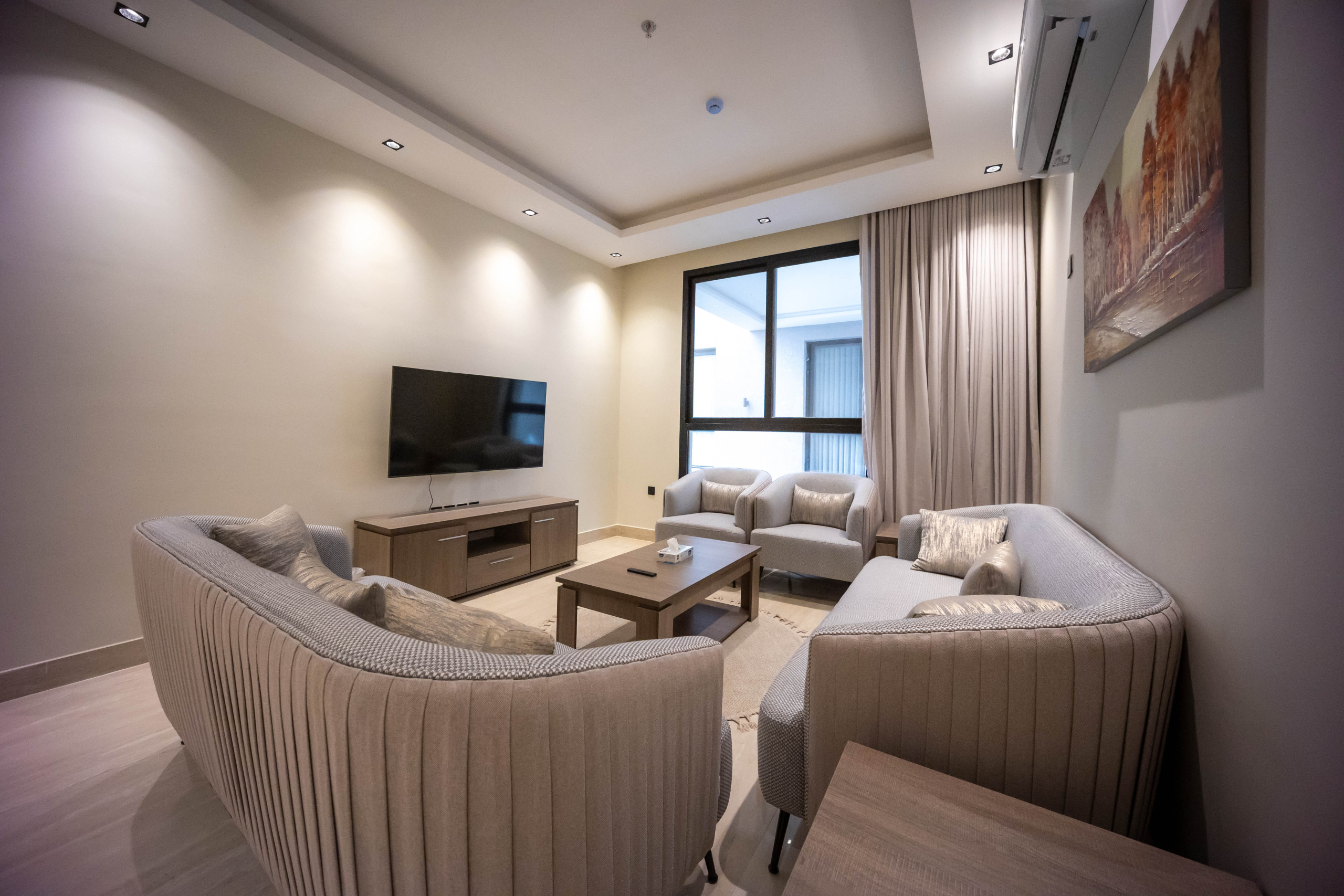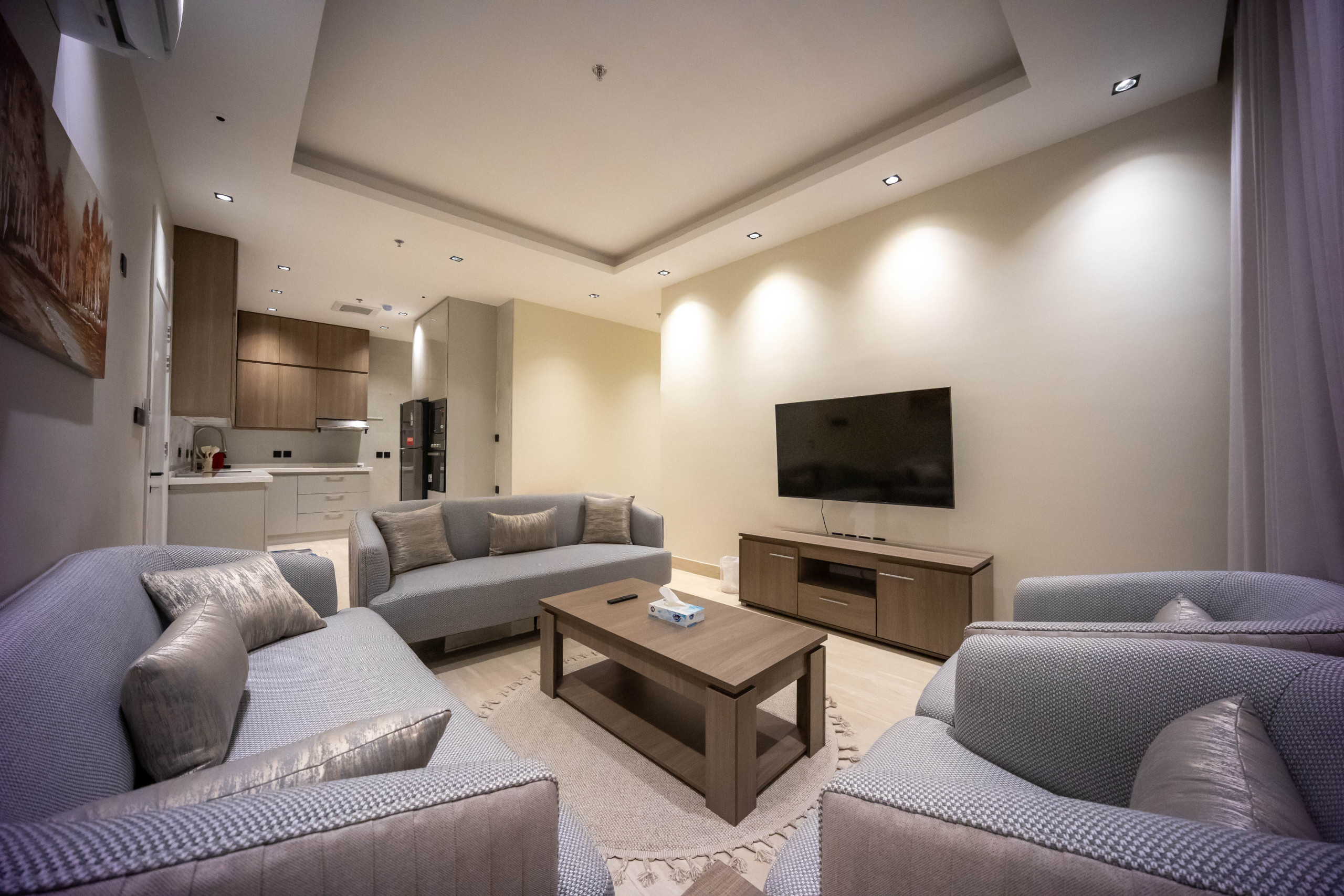 Stay in a modern, fully furnished apartment in Riyadh’s Hittin district, Perfect for families, business travelers, or groups of friends, this 100 sqm serviced apartment combines comfort, convenience, and prime location.