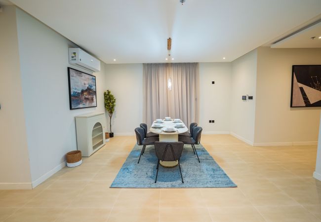 fully furnished apartment in Riyadh’s Al Malga, Perfect for families, business travelers, or groups of friends, serviced apartment combines comfort, and prime location.