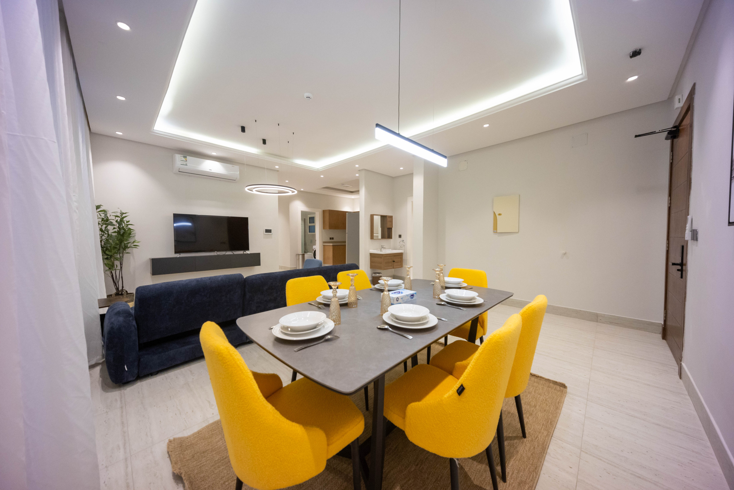 fully furnished apartment in Riyadh’s Al Malga, Perfect for families, business travelers, or groups of friends, serviced apartment combines comfort, and prime location.