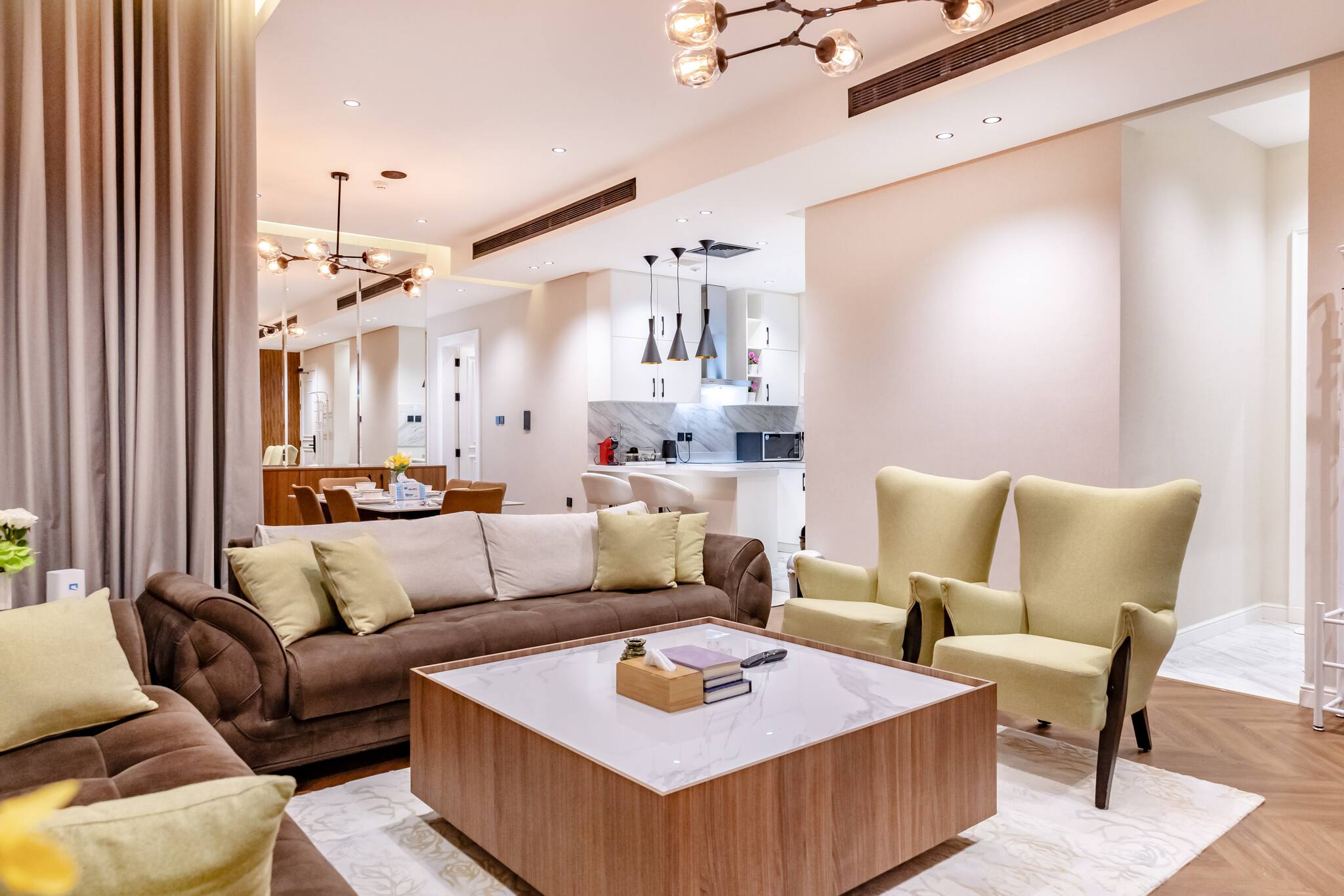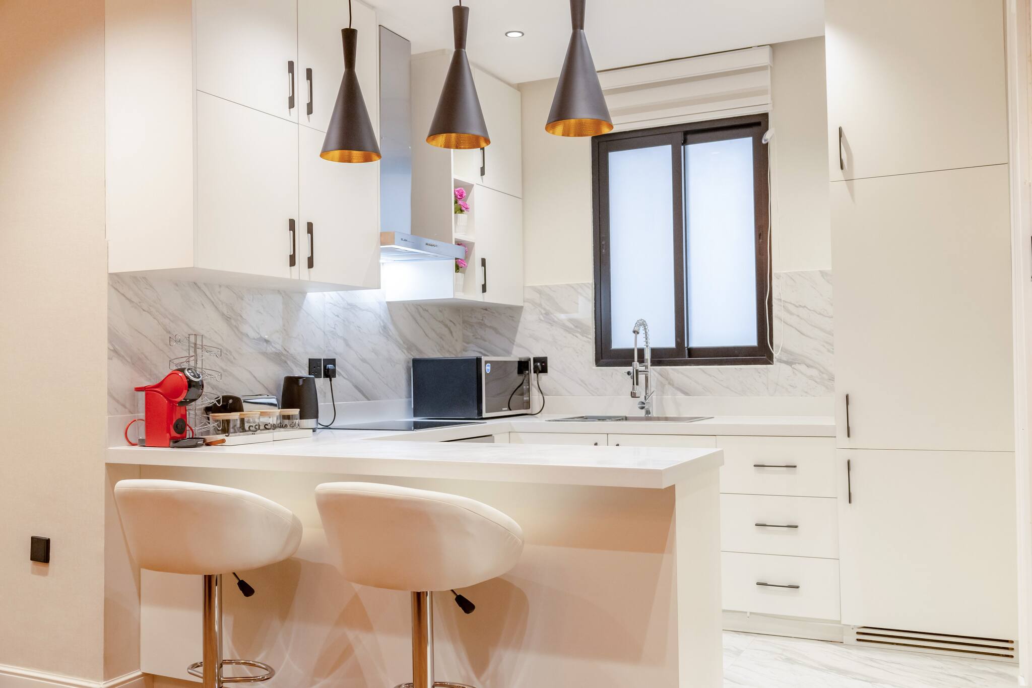 The apartment in Riad has 3 bedrooms and has capacity for 6 people. The apartment is 120 m². The accommodation is equipped with the following items: washing machine, internet (Wi-Fi), air-conditioned, open-air parking near the building, 1 TV. In the electric independent kitchen, refrigerator, microwave and dishes/cutlery are provided.