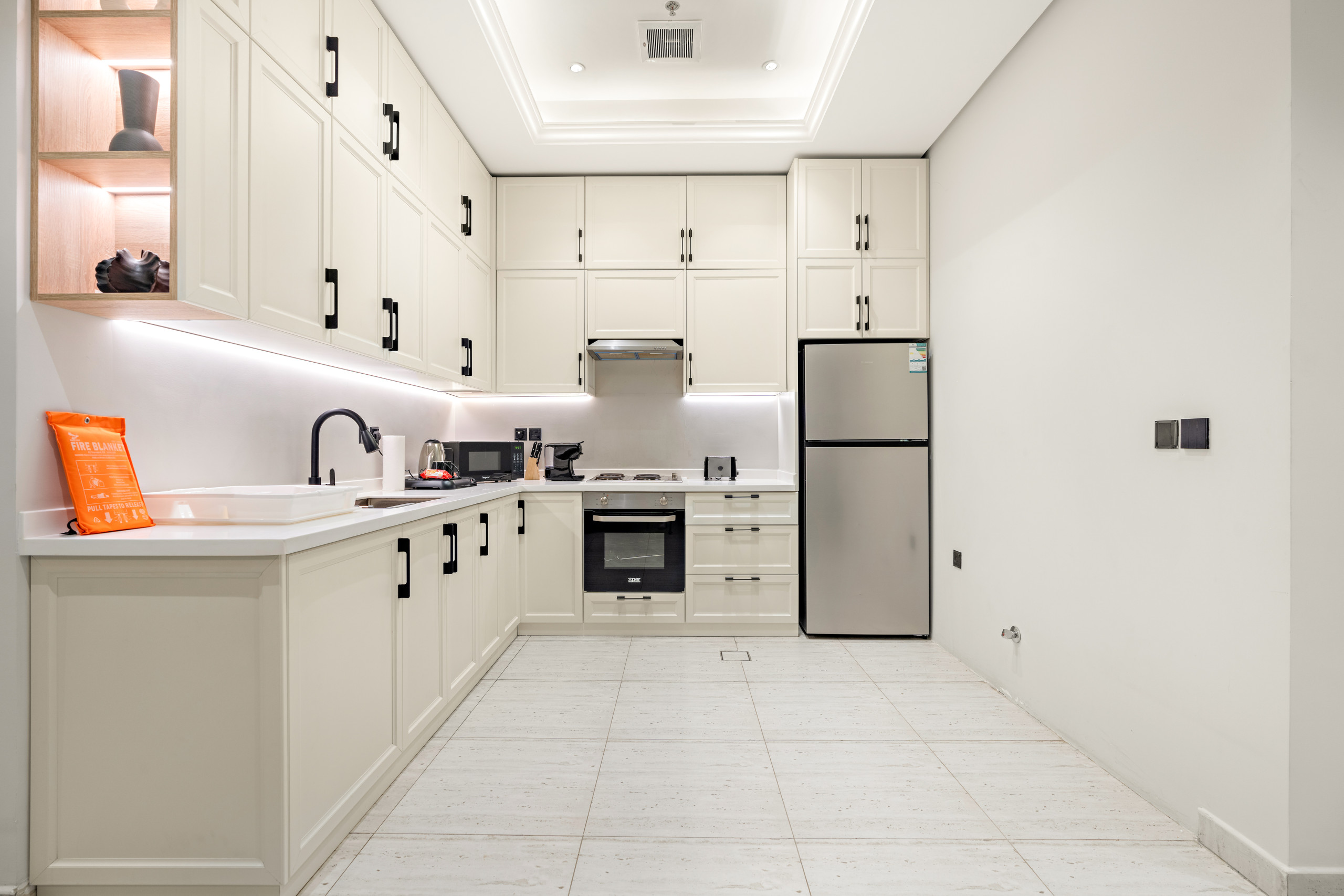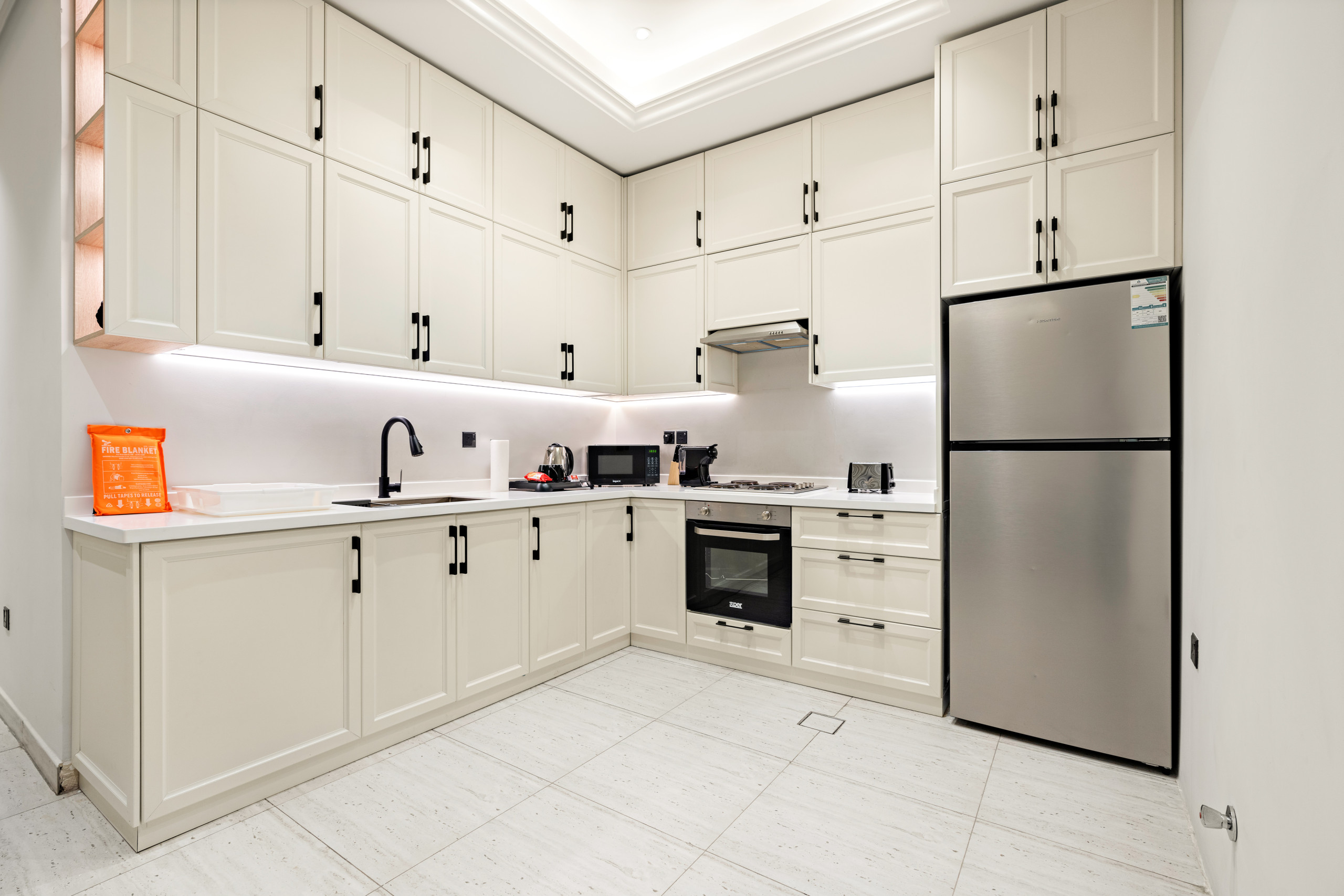مطبخ عصري، غرفة معيشة فسيحة، ثلاث غرف نوم تضم سرير كينغ وسريرين كوين مع خزائن مدمجة، حمّامين عصريين، إنترنت بسرعة 500 ميغابت، شرفة مزودة بطاولة وكراسي، منطقة ألعاب للأطفال وصالة رياضية.