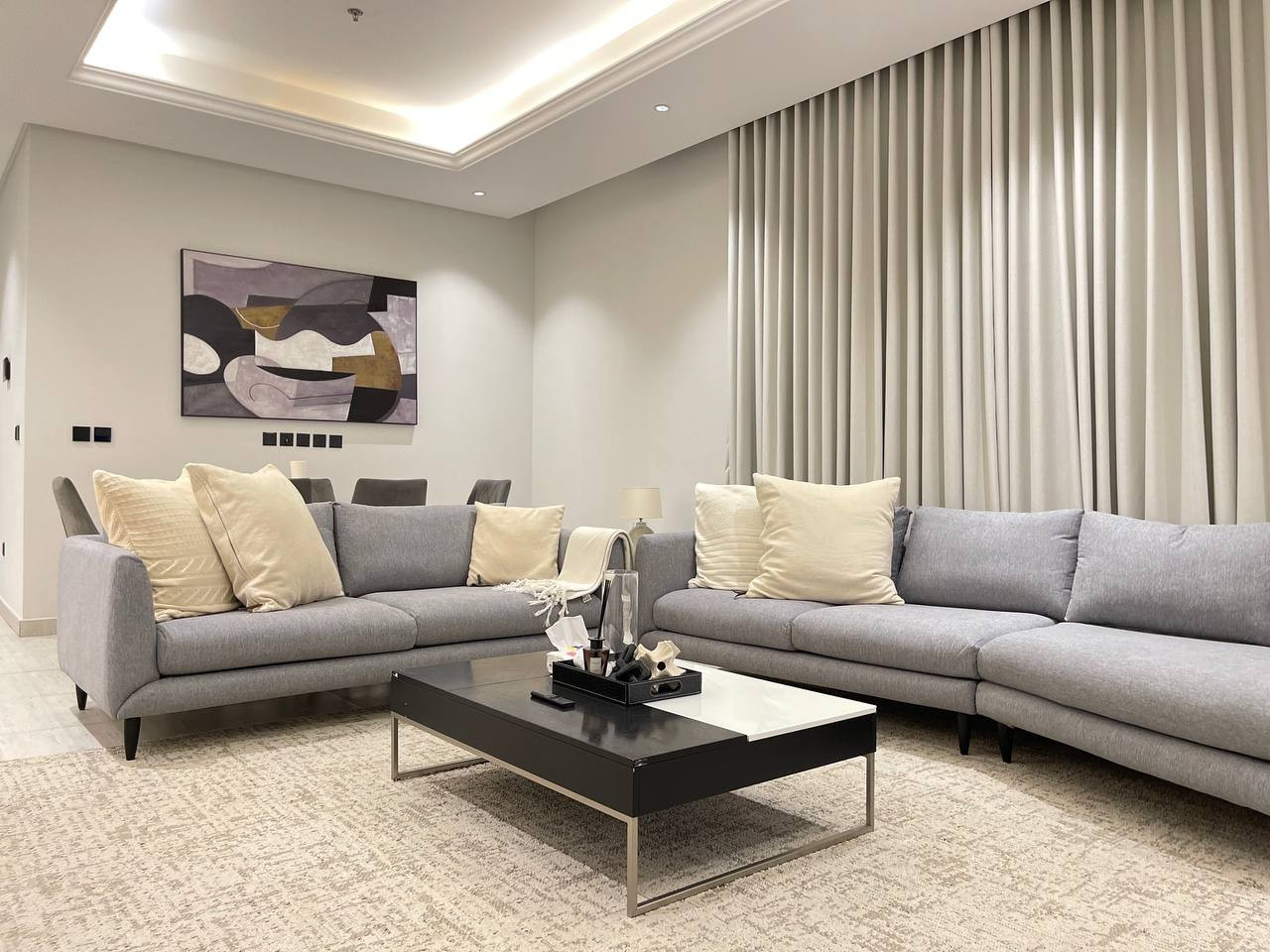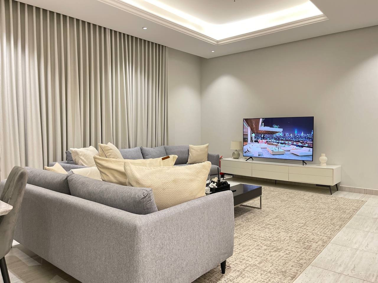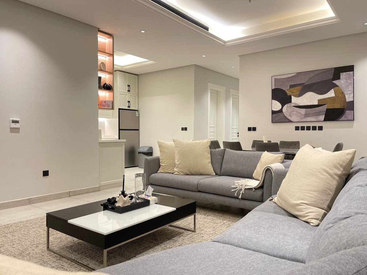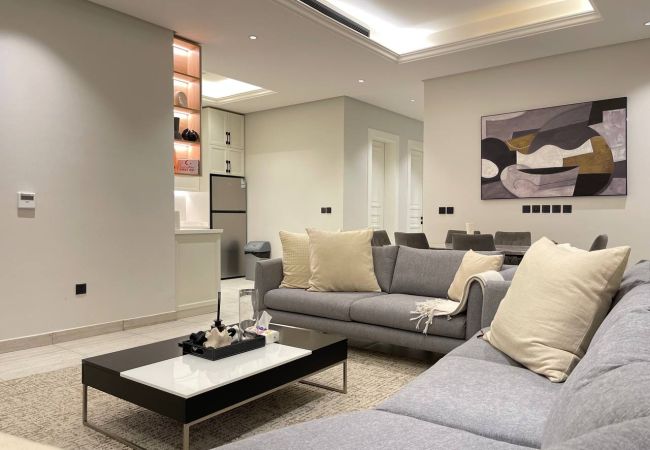 Stay in a modern, fully furnished apartment in Riyadh’s Al Malga district, Perfect for families, business travelers, or groups of friends, this 100 sqm serviced apartment combines comfort, convenience, and prime location.