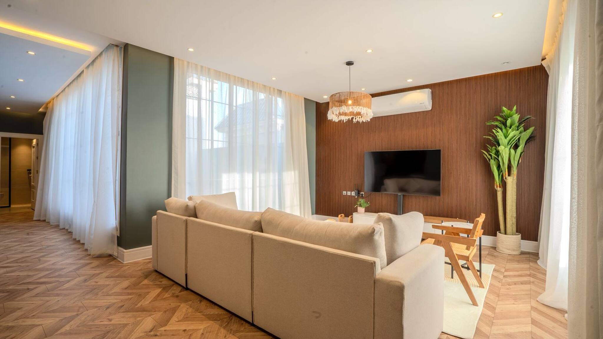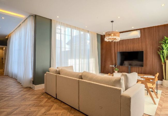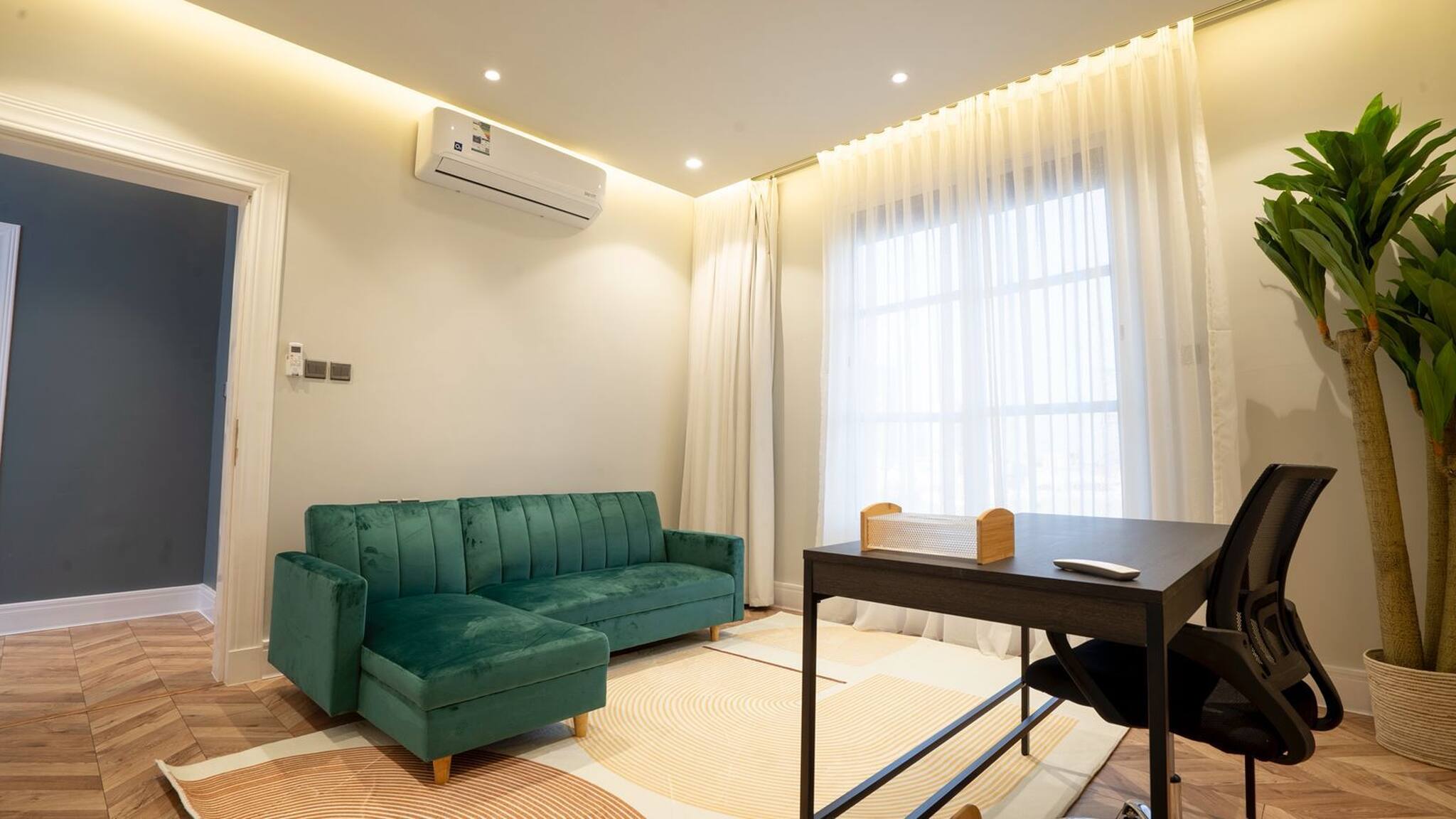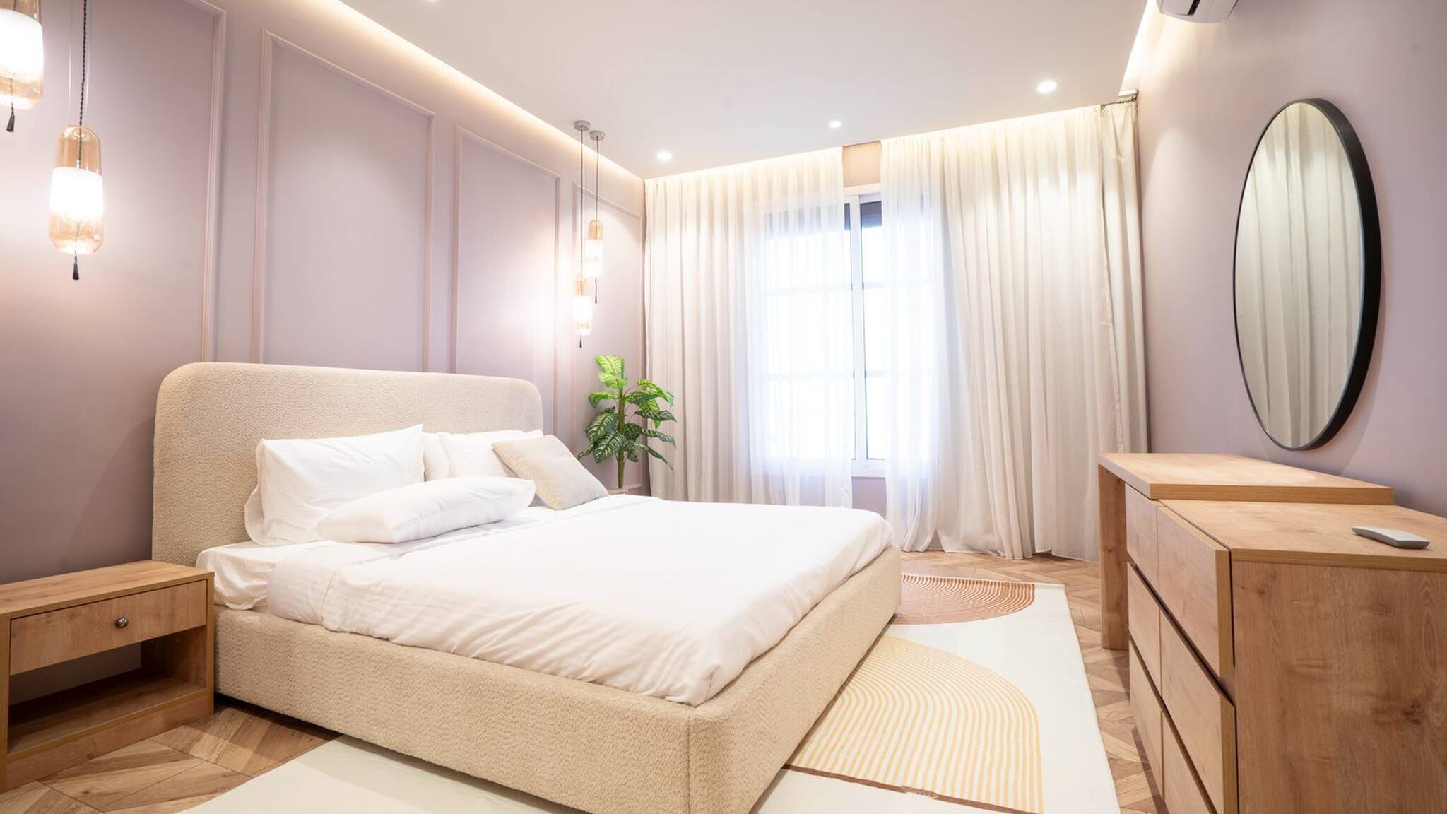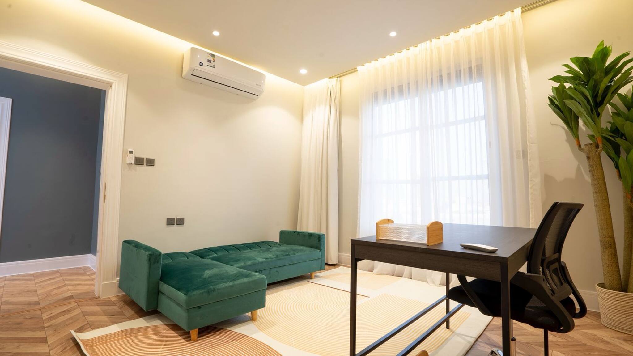 The apartment in Riad has 3 bedrooms and has capacity for 6 people. The apartment is 112 m². The accommodation is equipped with the following items: washing machine, internet (Wi-Fi), air-conditioned, open-air parking near the building, 1 TV.In the electric open plan kitchen, refrigerator, microwave and dishes/cutlery are provided.
