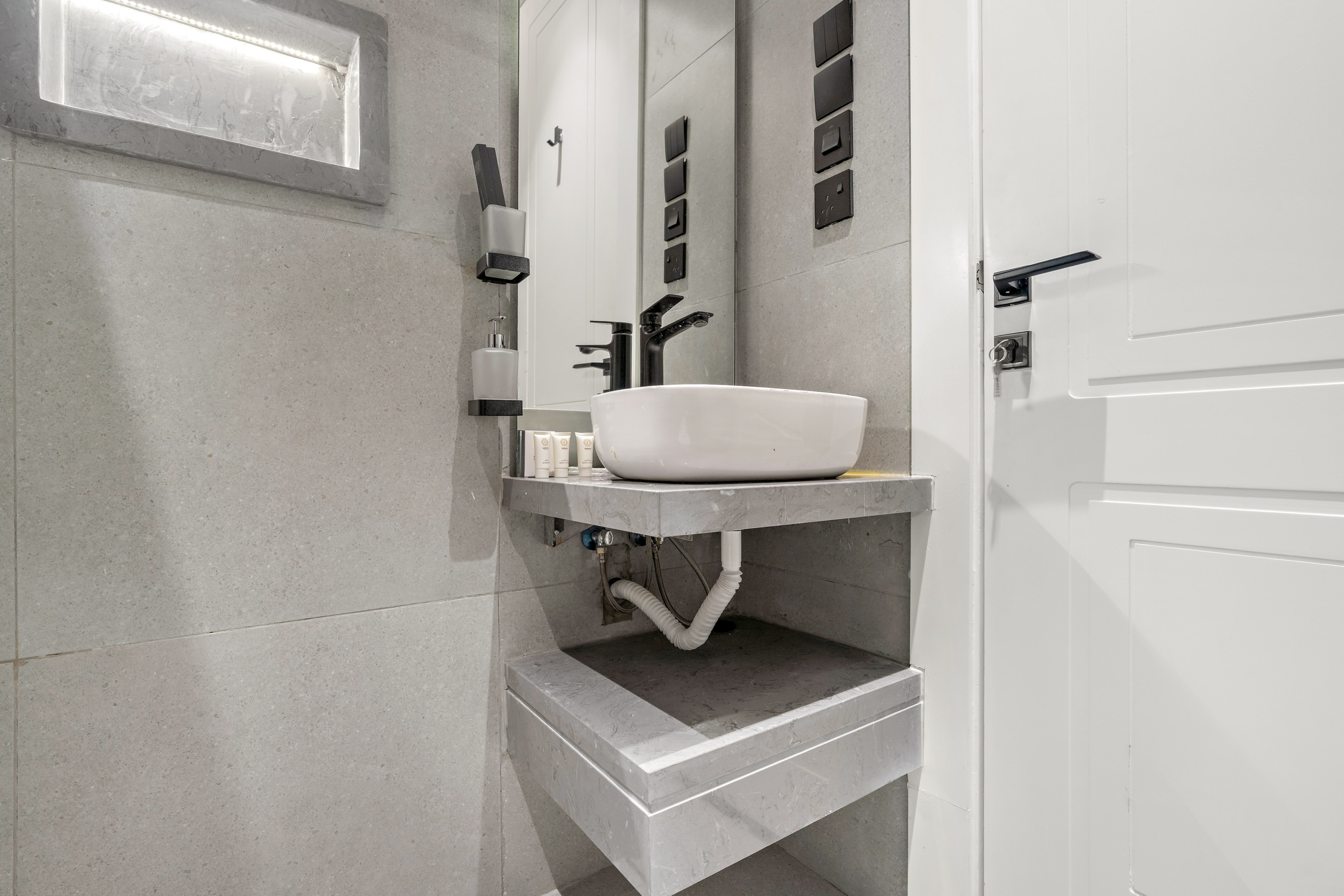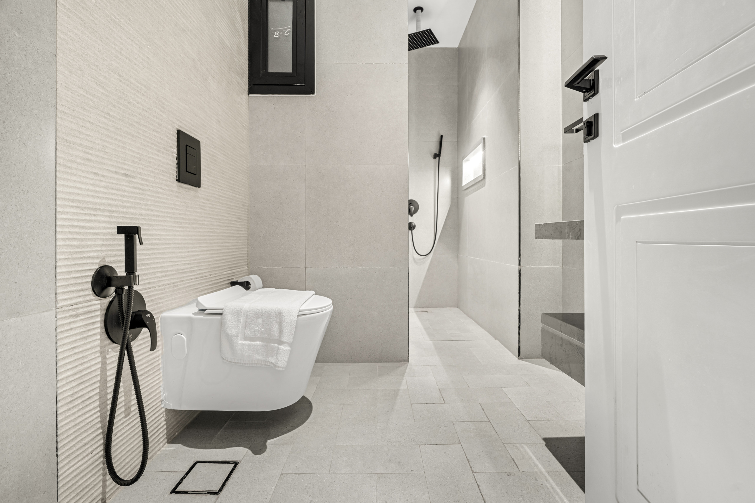 دورات المياه: 3 دورات مياه عصرية + دورة ضيافة، مزودة بالمناشف ومستحضرات النظافة.