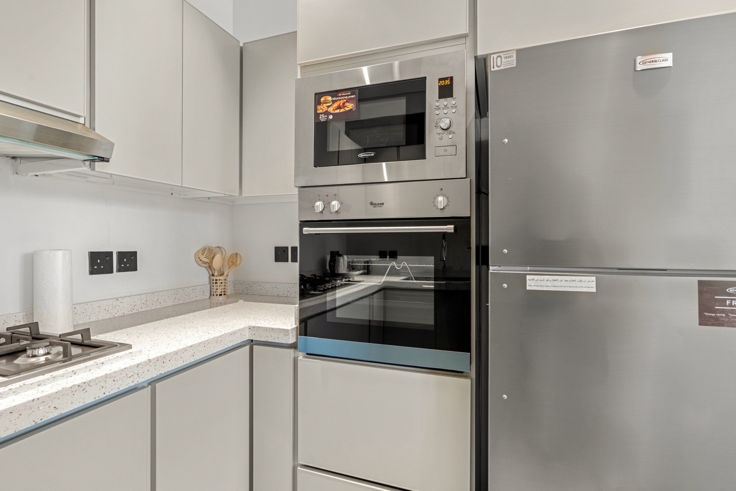 المطبخ: مجهز بالكامل بجميع الأجهزة الحديثة.