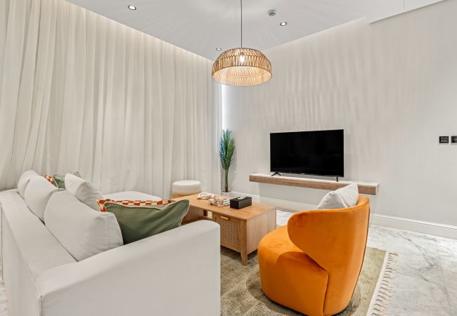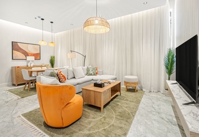 Comfortable two-bedroom apartment in the heart of Riyadh, ideal for families, small groups, or business travelers. 98 m² apartment combines modern design.