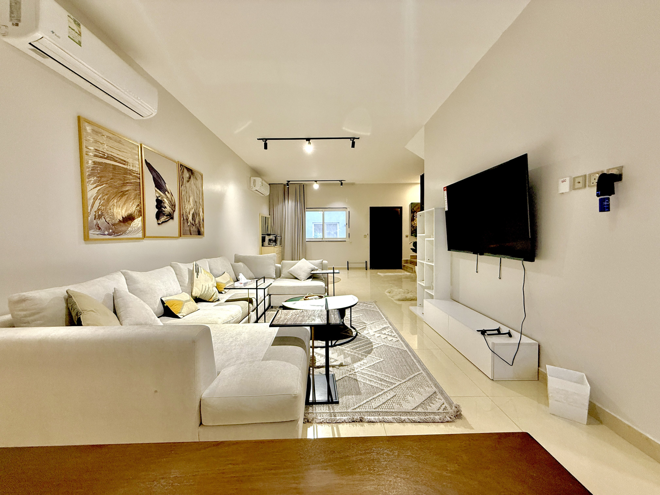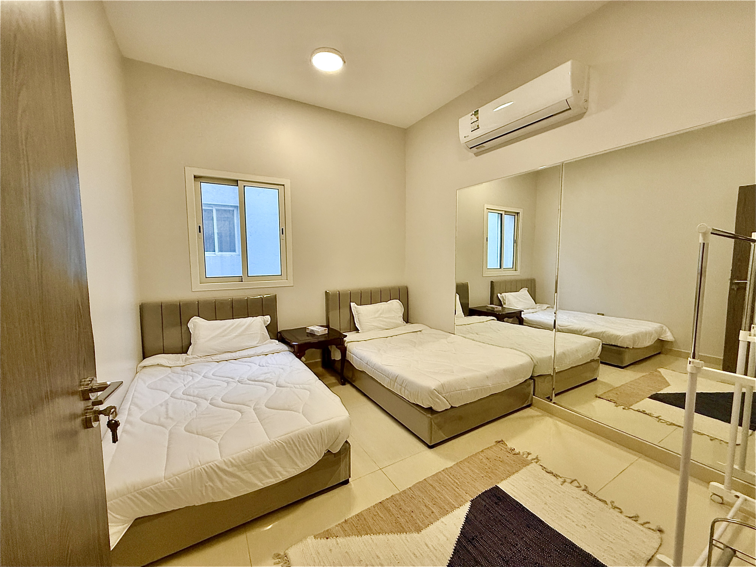 Welcome to Nuzul — a modern two-story apartment featuring a cozy living room, elegant dining area, and a fully equipped kitchen. Enjoy 2 bedrooms, 2.5 bathrooms, a private balcony, self check-in, private parking, and free high-speed Wi-Fi for your comfort.