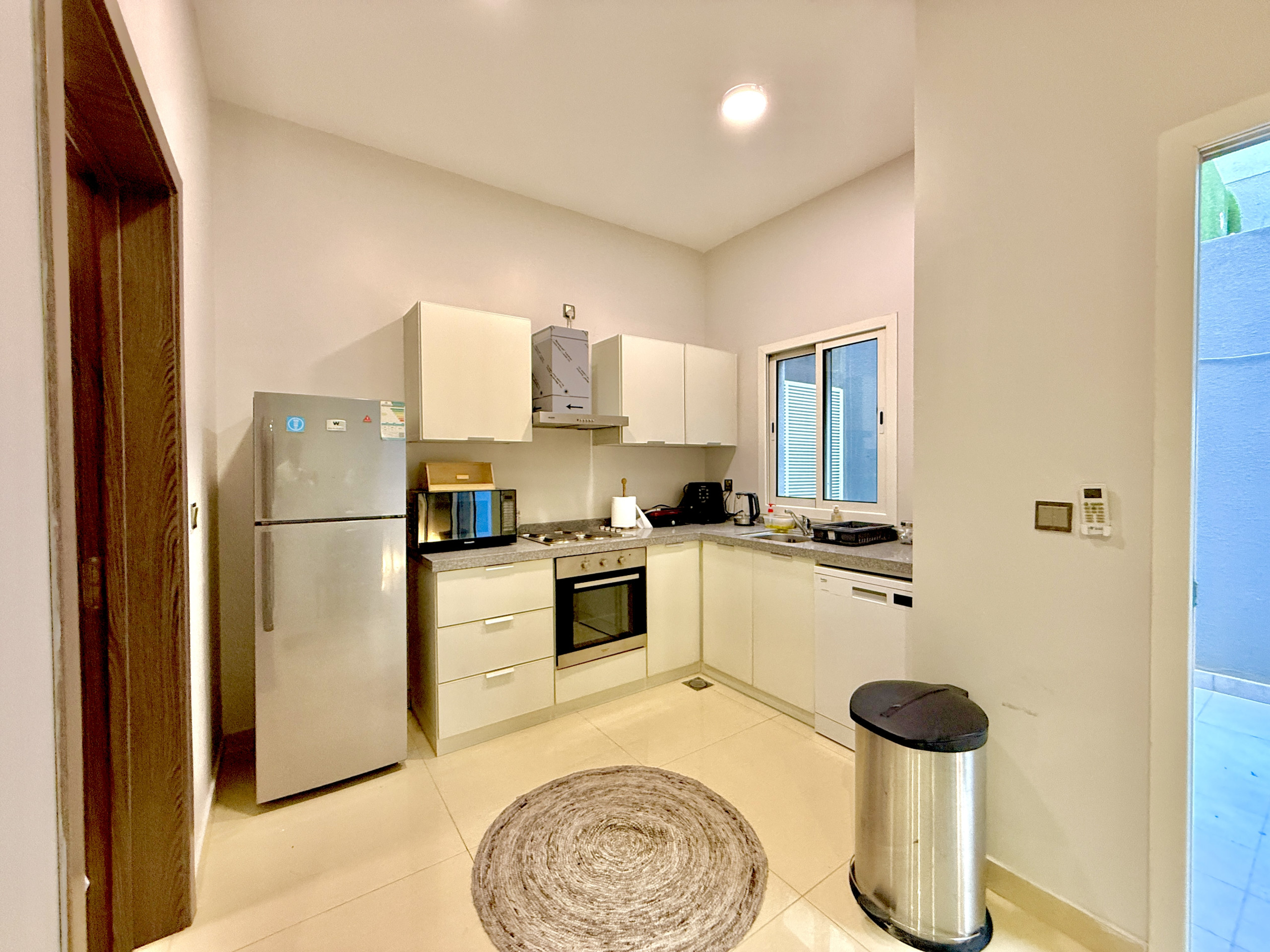Discover a comfortable 2-bedroom apartment in Riad, perfect for up to 4 guests seeking a cosy urban retreat. This 102 square metre space offers a modern American-style kitchen fully equipped with essential appliances including a fridge, microwave, washing machine, and dishes.
