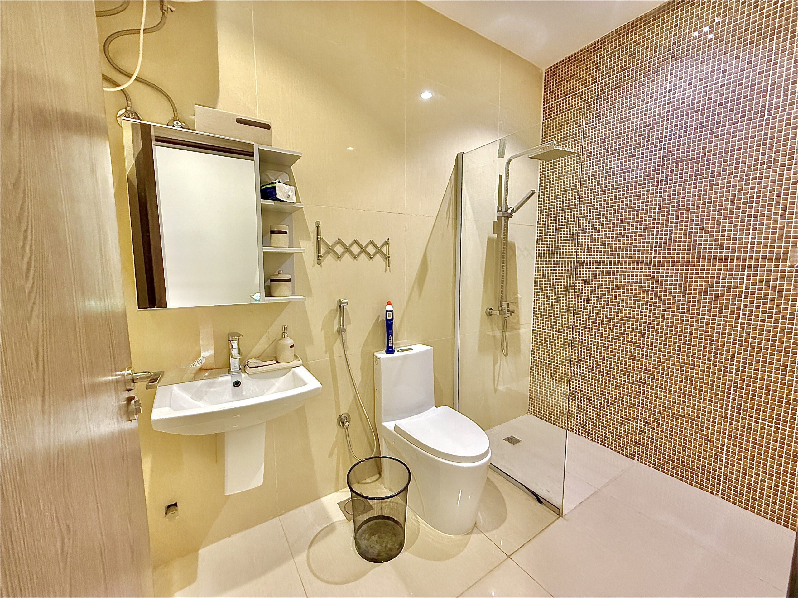 The apartment features two bathrooms, both with shower facilities, ensuring convenience for all guests. The sleeping arrangements include a luxurious king-size bed and two individual beds, providing flexible accommodation options. Stay connected with complimentary WiFi and enjoy entertainment on the provided TV.