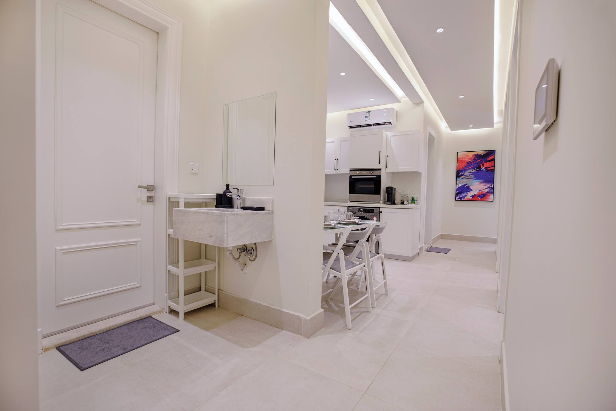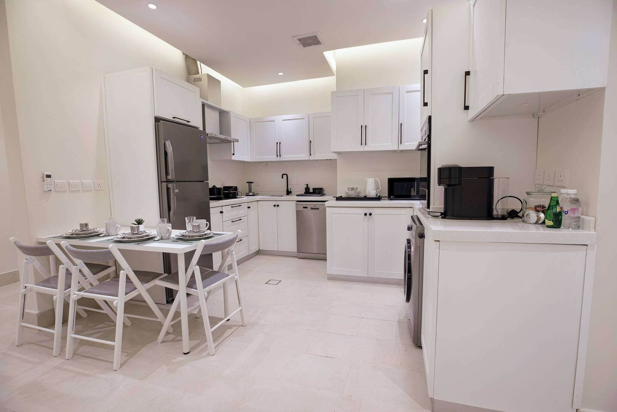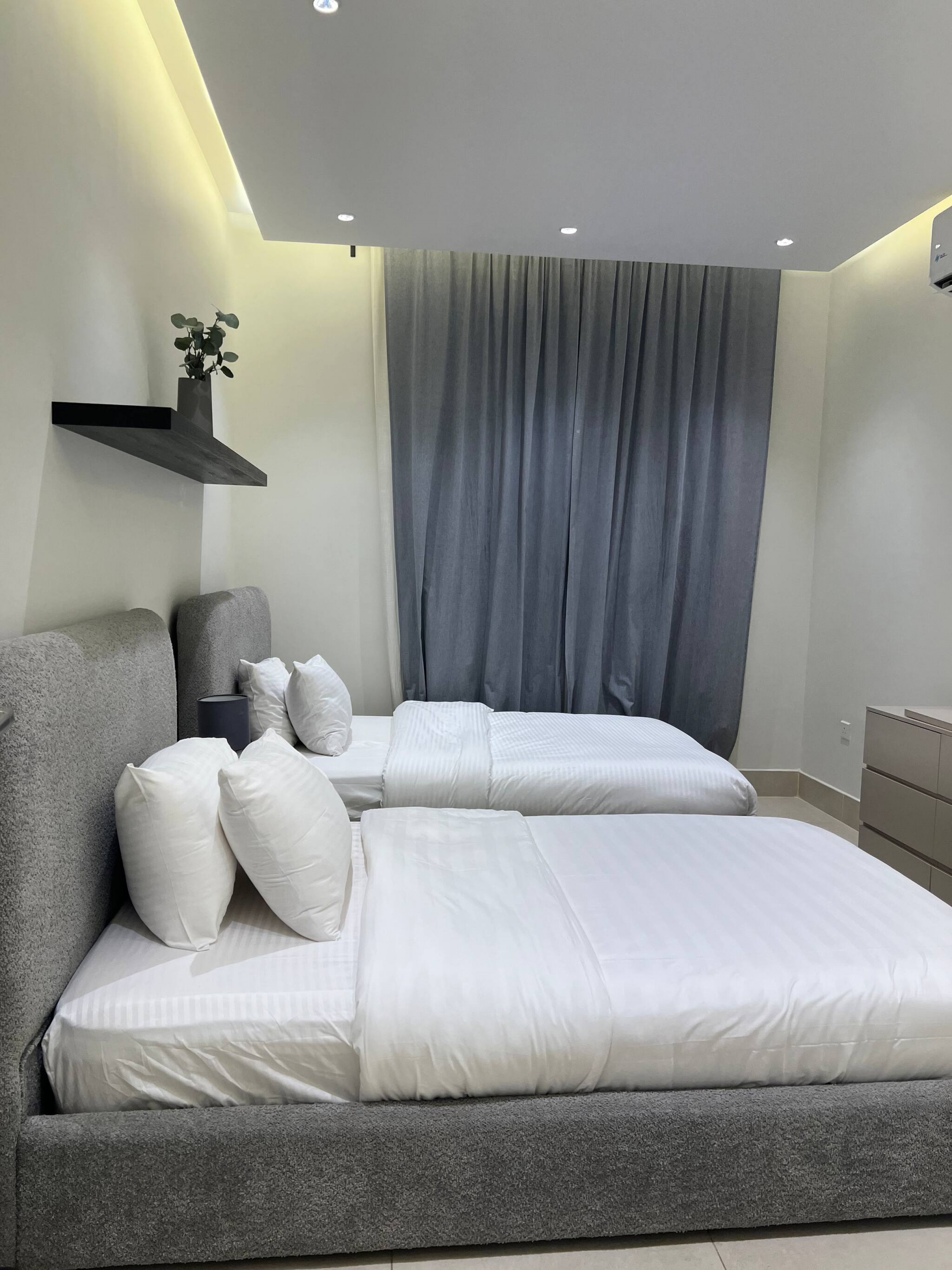 Stay in a modern, fully furnished apartment in Riyadh’s Almalek salman district, Perfect for families, business travelers, or groups of friends, this 100 sqm serviced apartment combines comfort, convenience, and prime location.Key Features:3 Bedrooms with 4 beds (1 king-size + 3 single) – accommodates up to 5 guests2 full bathrooms with showers and hot waterSpacious living area with air conditioning, smart Tv, and high-speed WiFiFully equipped American-style kitchen: fridge, microwave, washing machineMaintenance and internet included for a worry-free stayLocation Highlights:Situated in Almalek salman, Riyadh – close to shopping malls, restaurants, and major highways