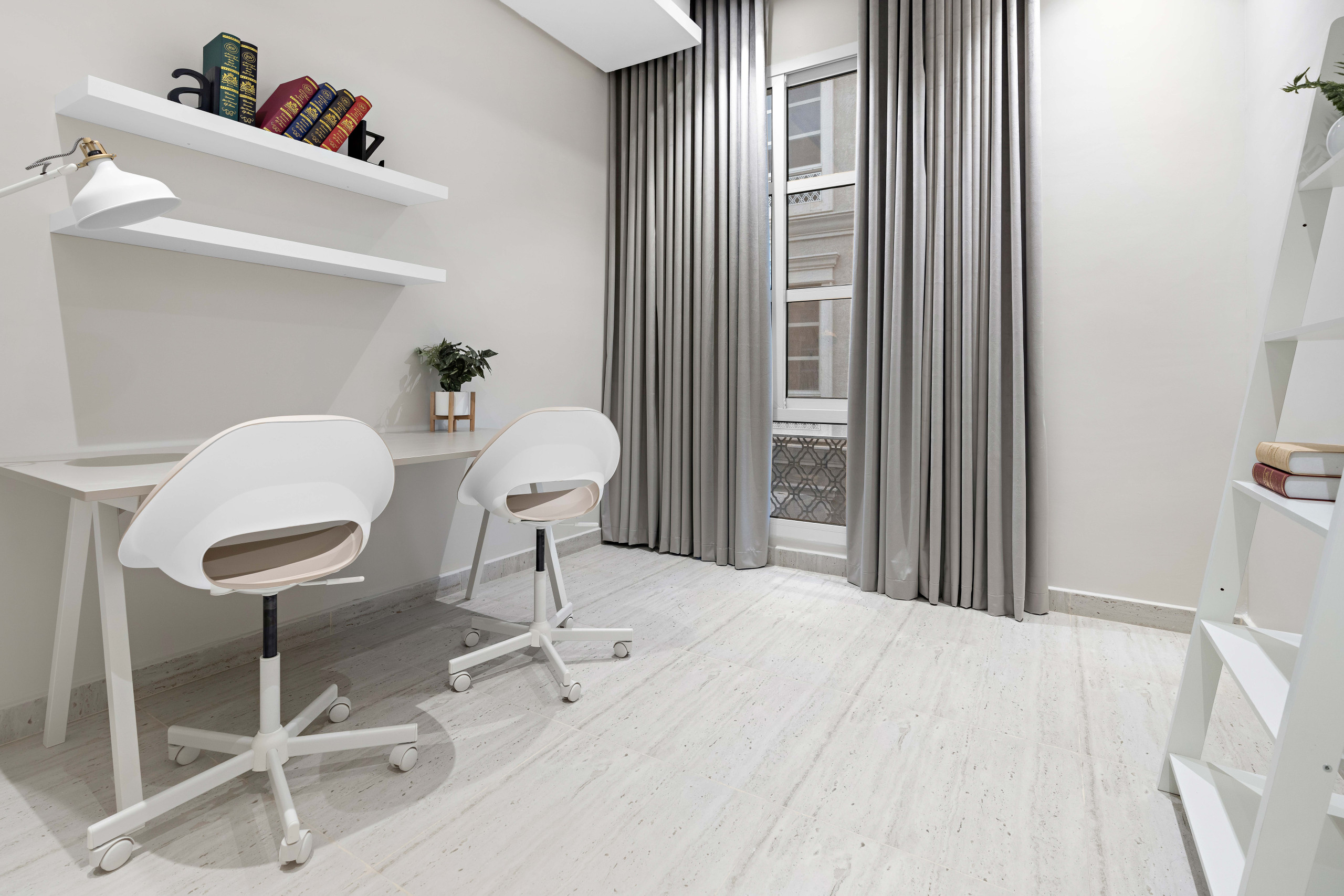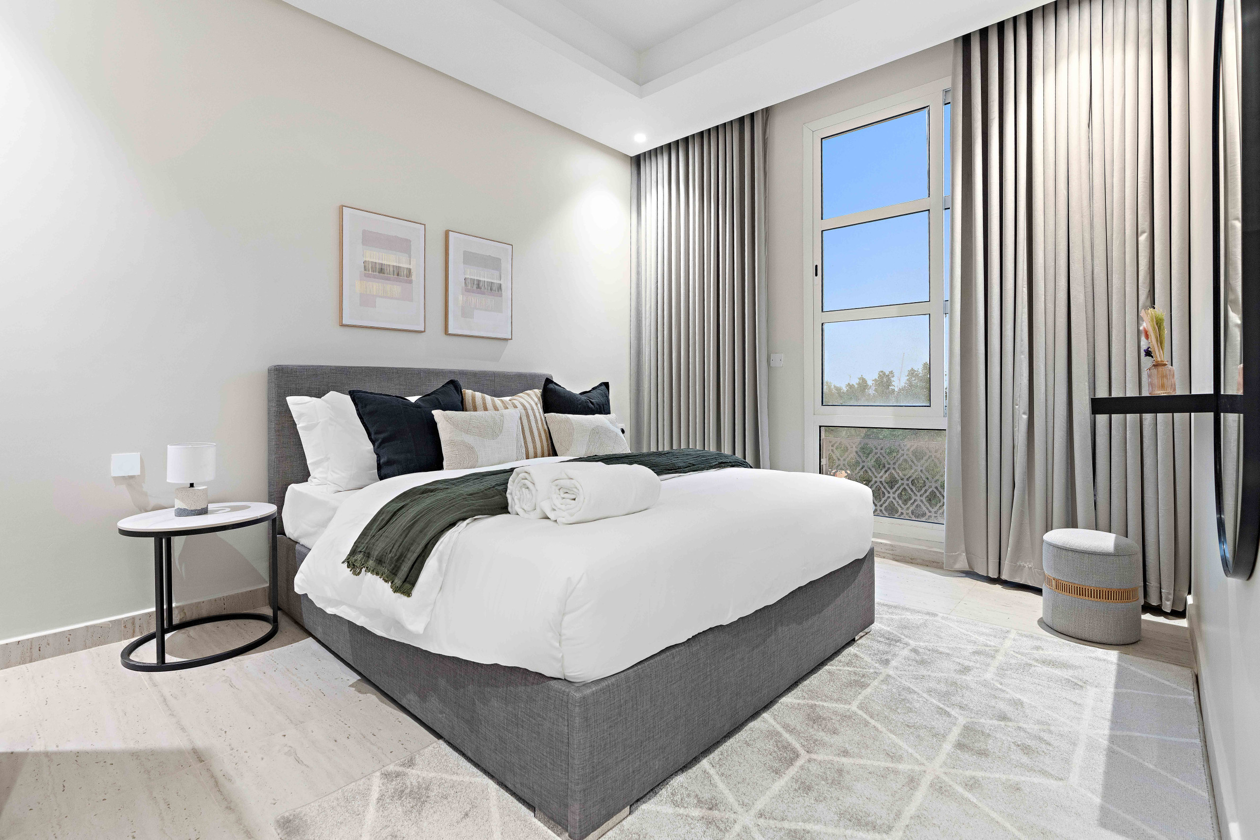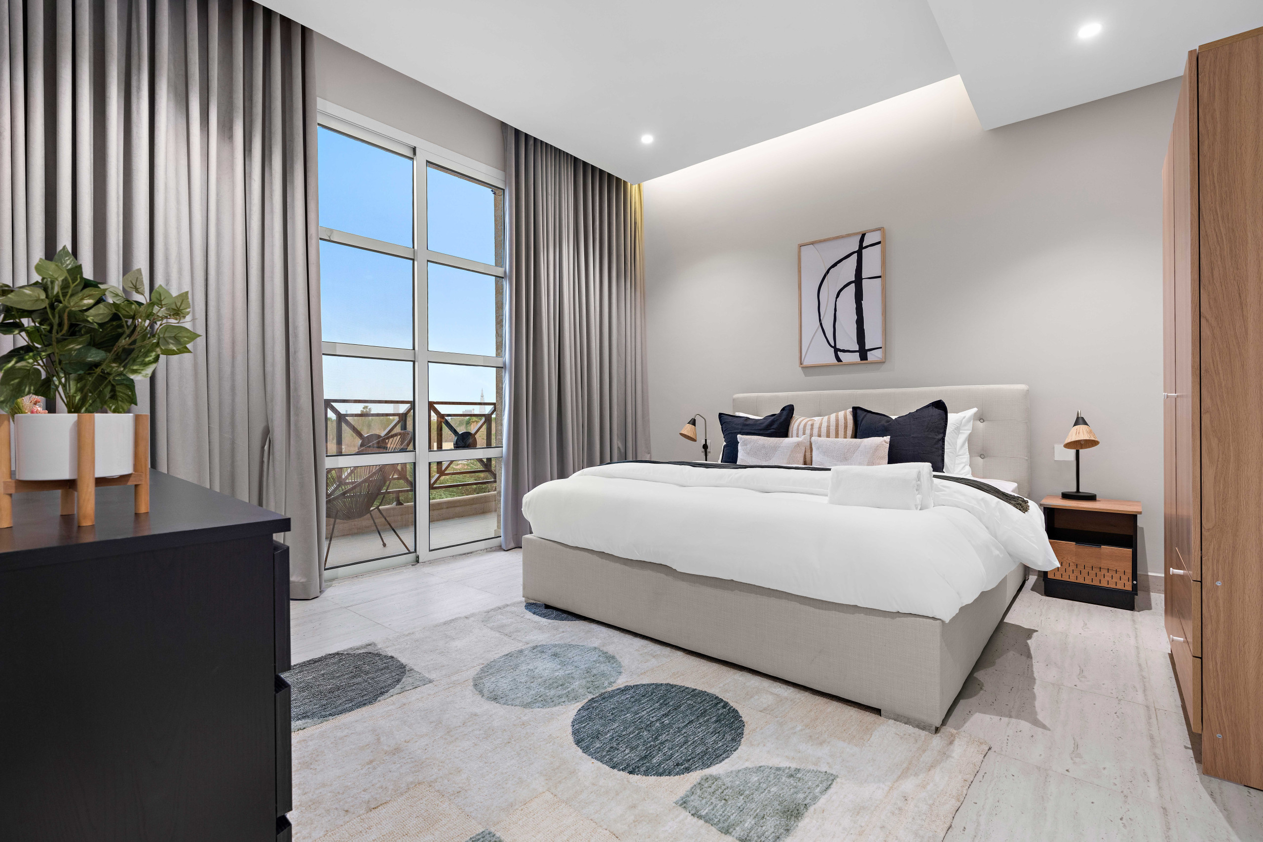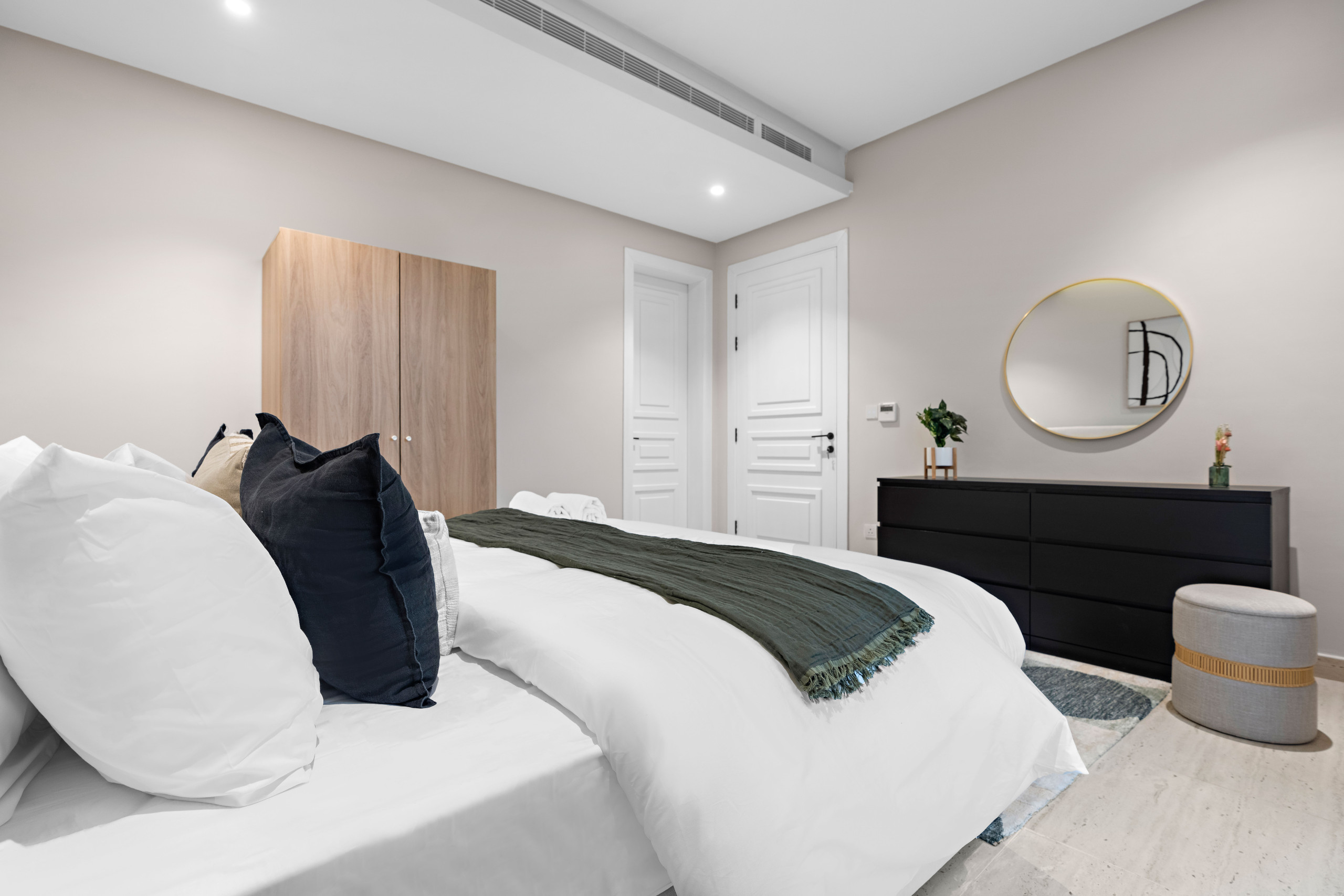 A modern 2-bedroom apartment in Riyadh’s King Salman neighborhood. It features 2 large beds (king & queen), 2 bathrooms, a study room, fully equipped kitchen, dining area for 6, washing machine, and high-speed WiFi.