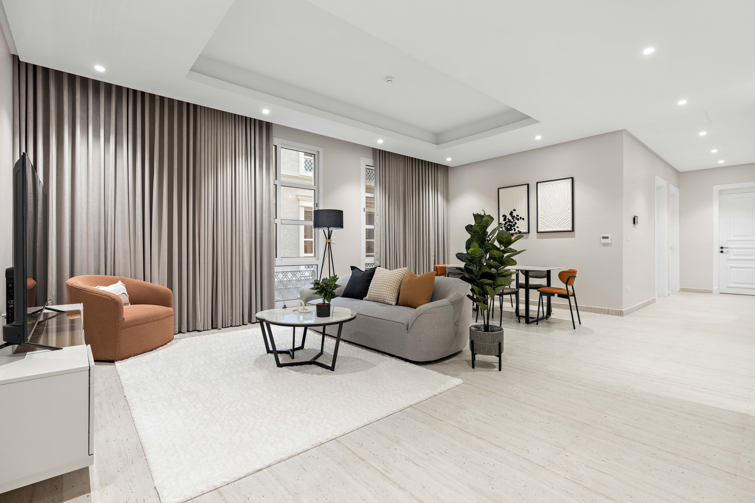 Comfortable two-bedroom apartment in the heart of Riyadh, ideal for families, small groups, or business travelers. 98 m² apartment combines modern design.