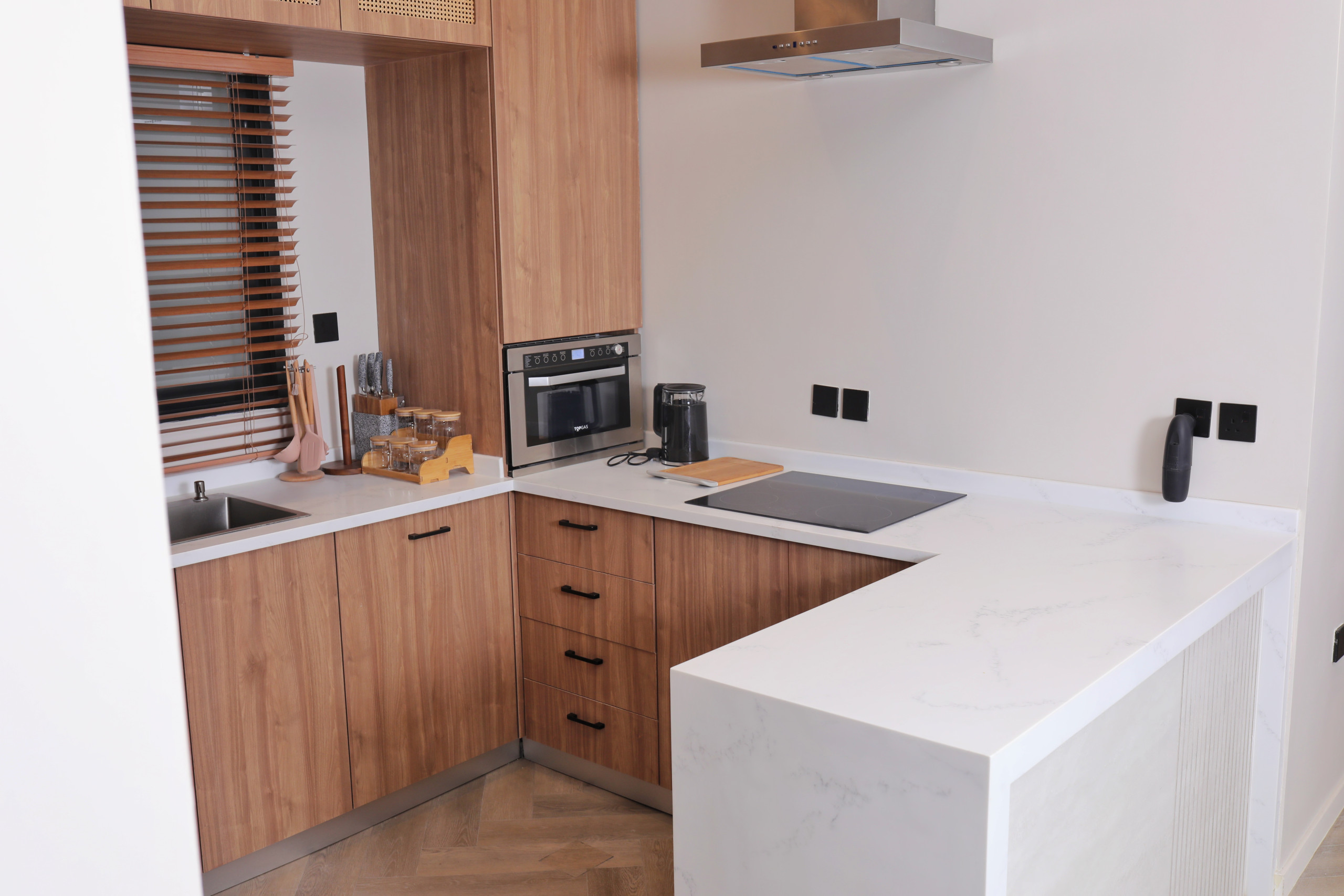 Located in a quiet residential area with easy access to shopping, dining, and main roads, this apartment is a perfect base for a comfortable and convenient stay in Riyadh.
