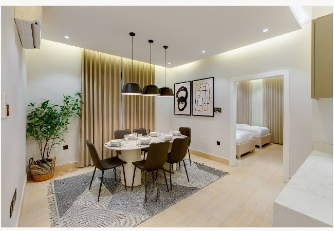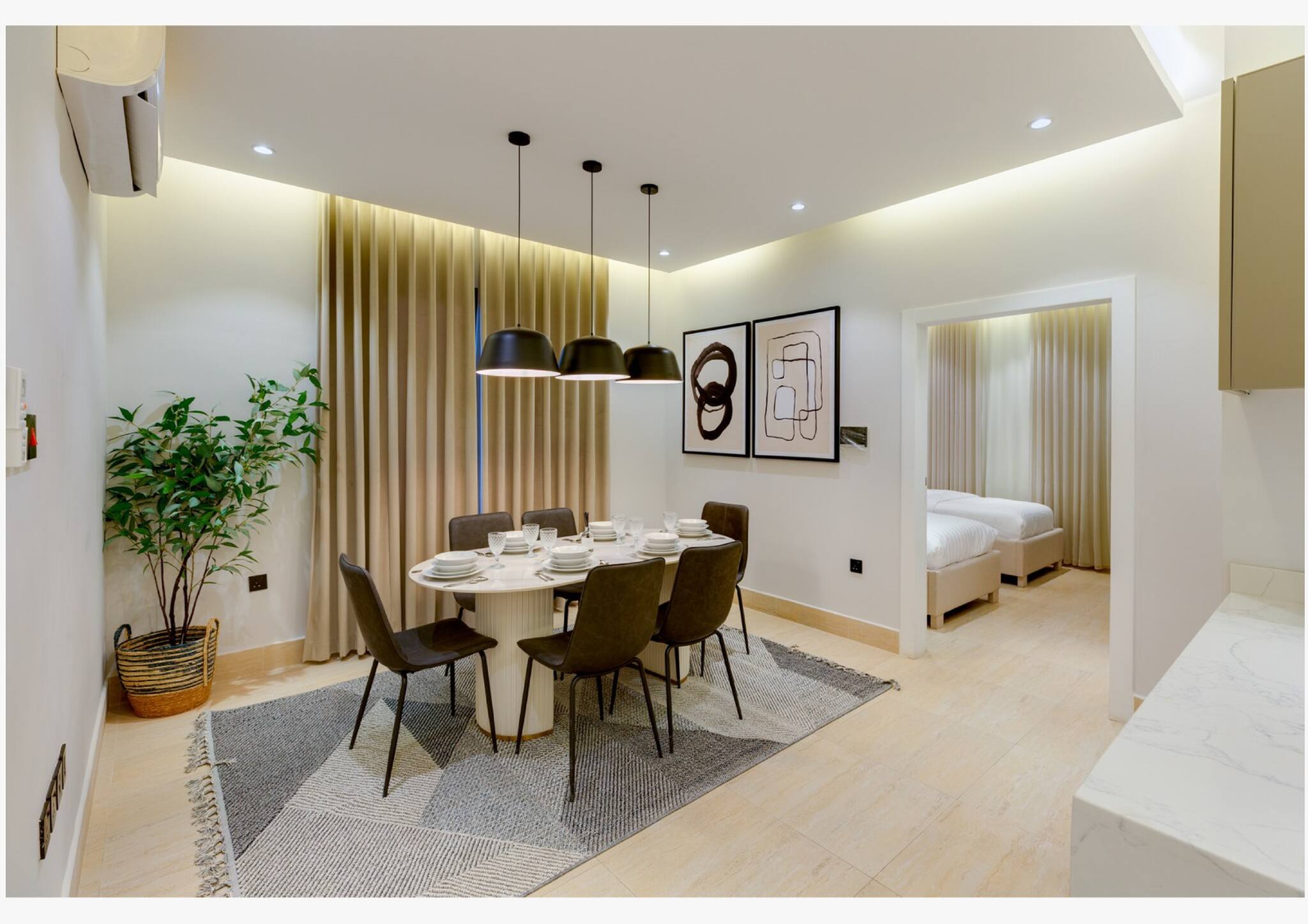 Located in a quiet residential area with easy access to shopping, dining, and main roads, this apartment is a perfect base for a comfortable and convenient stay in Riyadh.