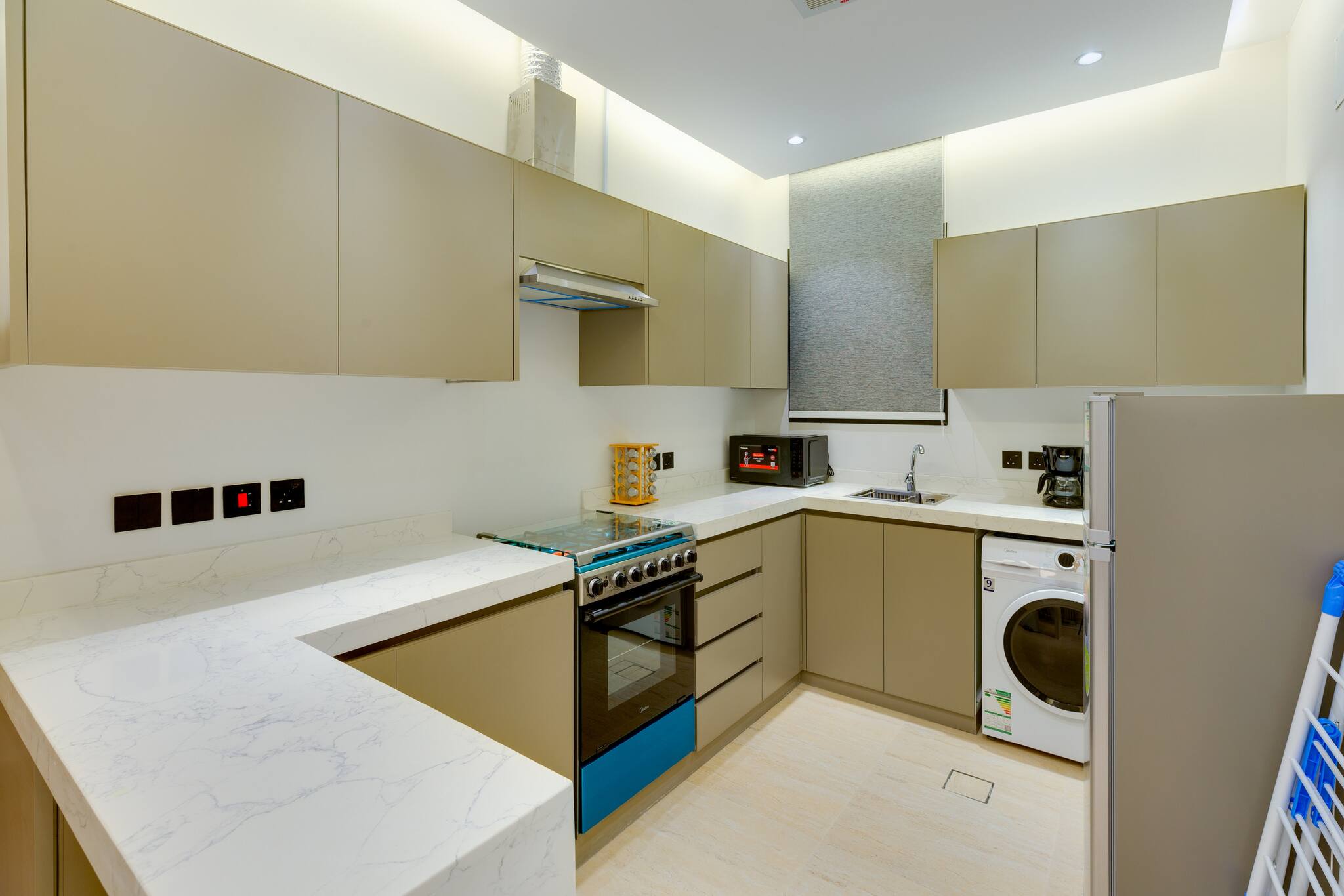 Stay in a modern, fully furnished apartment in Riyadh’s Al Malga district, Perfect for families, business travelers, or groups of friends, this 100 sqm serviced apartment combines comfort, convenience, and prime location.