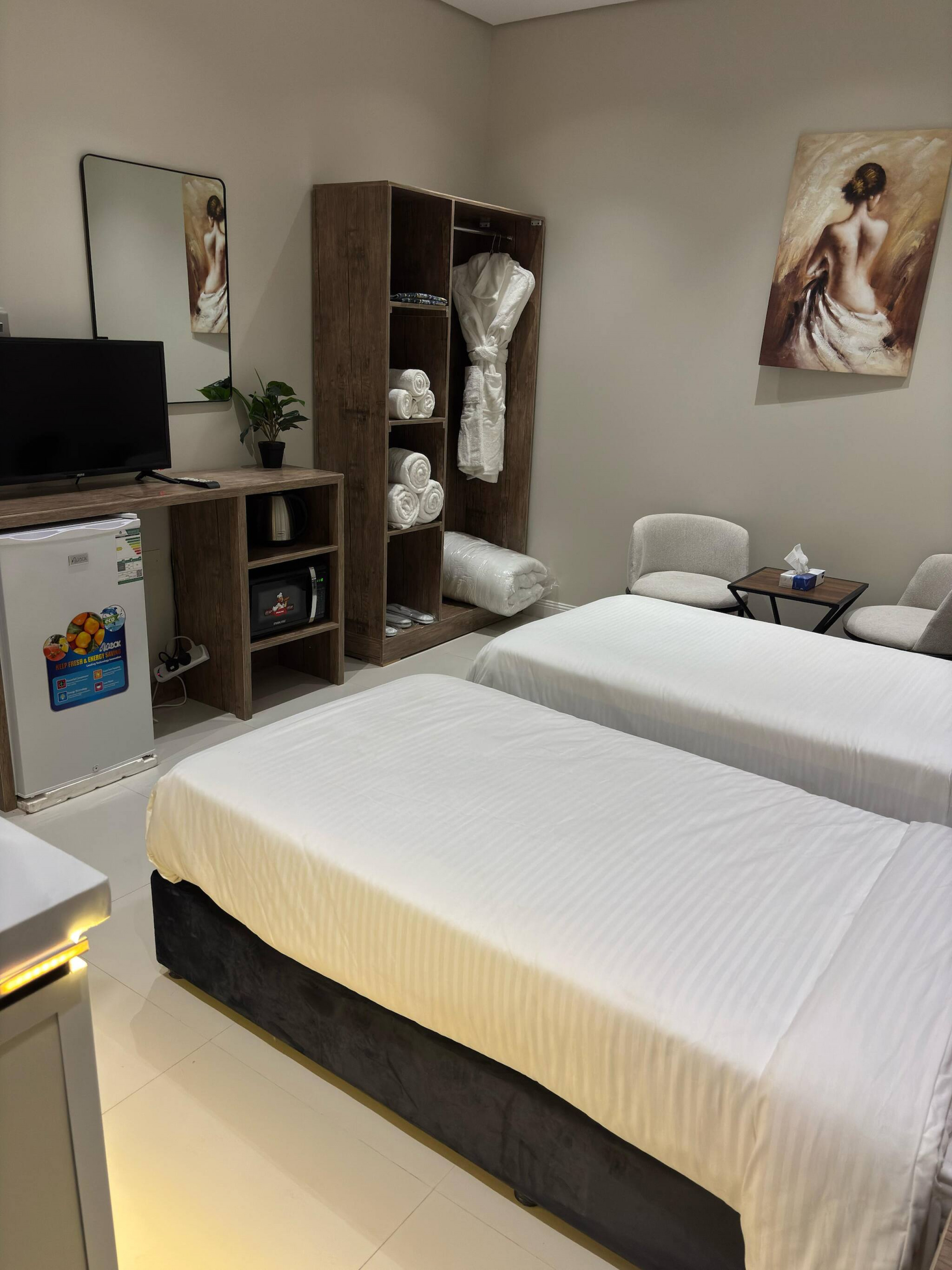 The studio in Riad has 1 bedrooms and has capacity for 2 people. The studio is 38 m². The accommodation is equipped with the following items: internet (Wi-Fi), air-conditioned, 1 TV. In the electric open plan kitchen, refrigerator is provided.