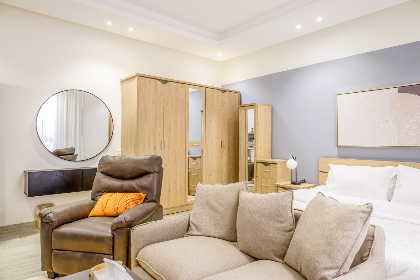 The studio in Riad has 1 bedrooms and has capacity for 2 people. The studio is 38 m². The accommodation is equipped with the following items: internet (Wi-Fi), air-conditioned, open-air parking near the building, 1 TV.the kitchen, microwave is provided.