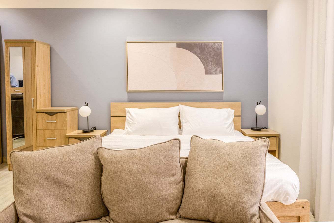 The apartment in Riad has 1 bedrooms and has capacity for 2 people. The apartment is 50 m². The accommodation is equipped with the following items: washing machine, internet (Wi-Fi), air-conditioned, open-air parking the same building, 1 TV. the kitchen, microwave and coffee machine is provided.